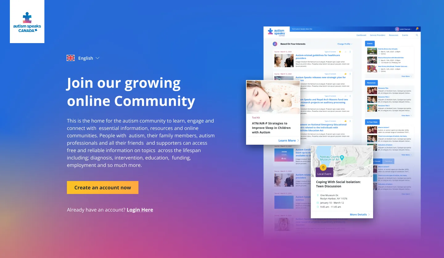 Autism Speaks Canada is an organization dedicated to creating an inclusive Canada for all individuals with autism throughout their lifespan. They do this through advocacy, services, supports, research and innovation, and advances in care for autistic individuals and their families.