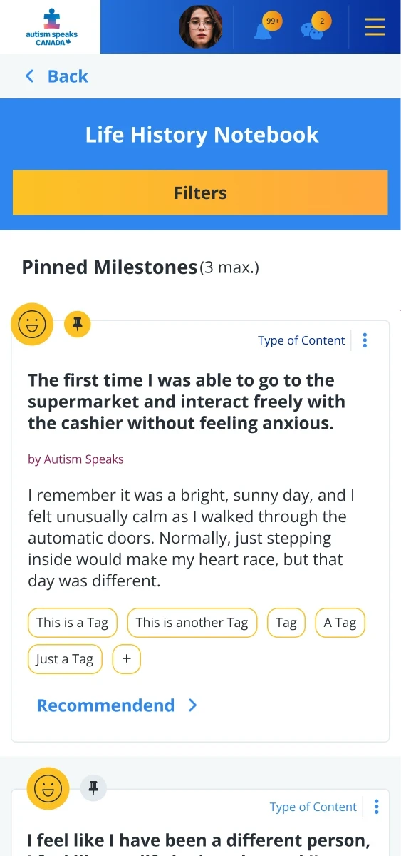 The goal of the project was to design an easy to use community hub, in which the members could connect within each other, share their experiences, discover resources, join communities and keep a log of their progress or daily live's activities.