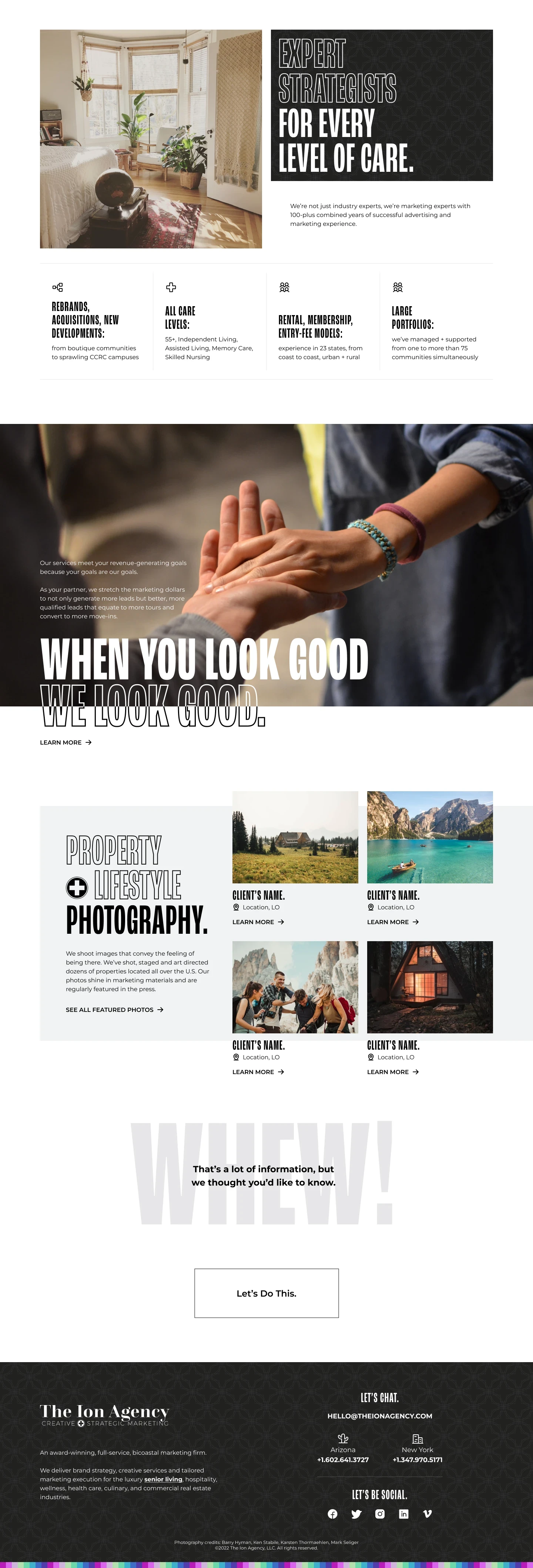 The ION Agency is a full-service agency with footprints in New York and Arizona, The Ion Agency serves clients coast to coast, primarily in the sectors of luxury senior living, hospitality, wellness, health care, culinary, and commercial real estate.