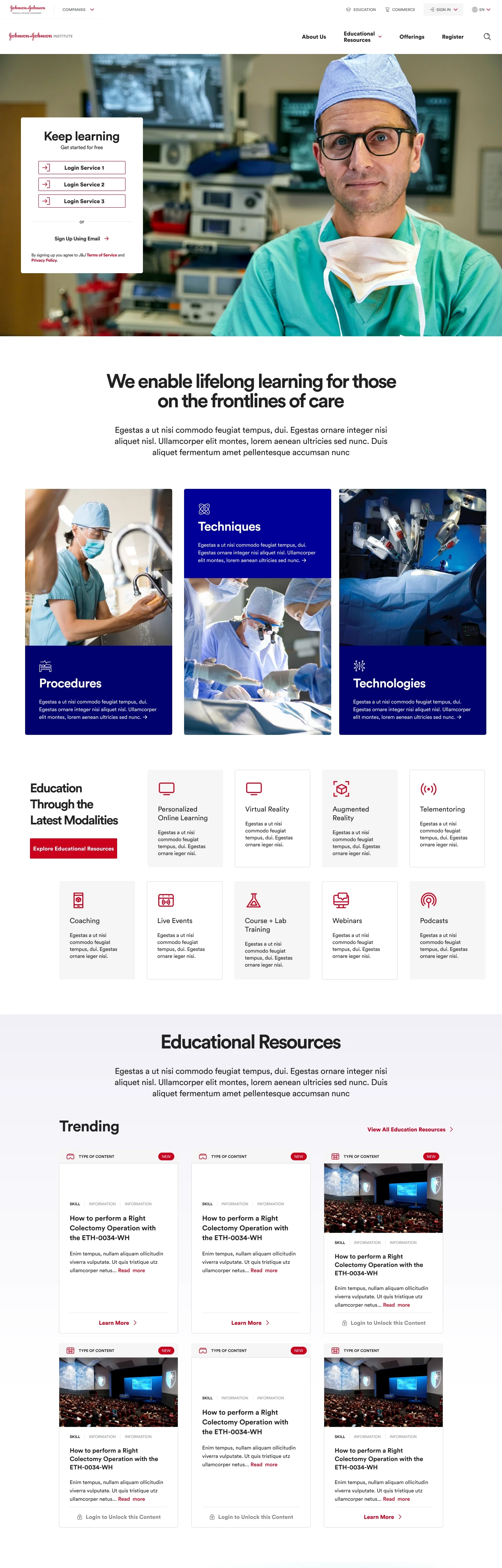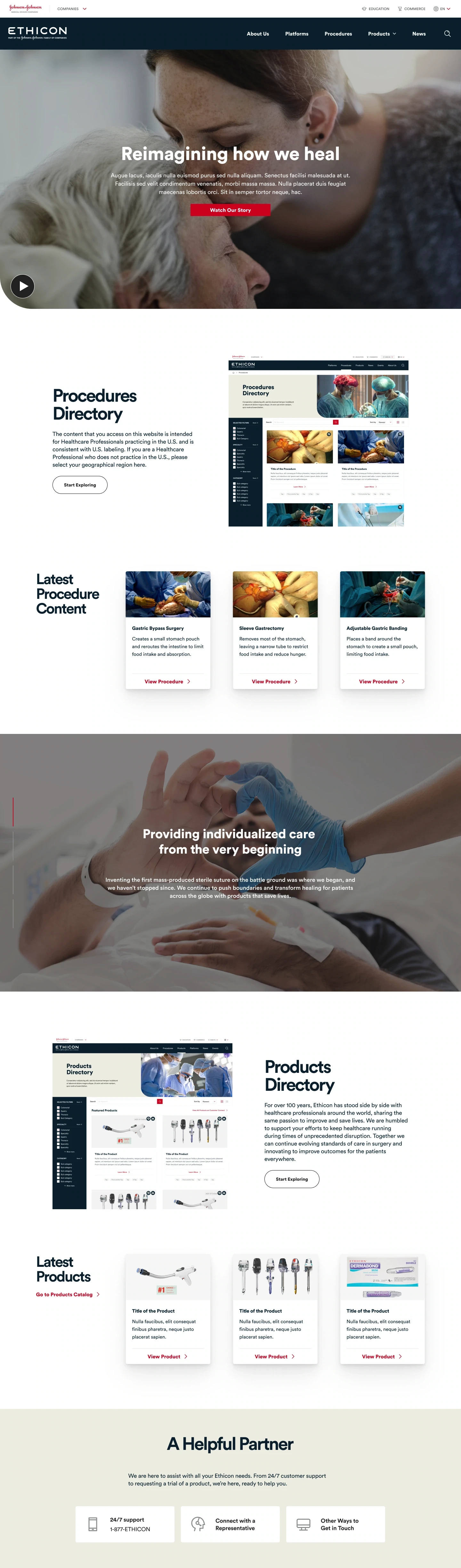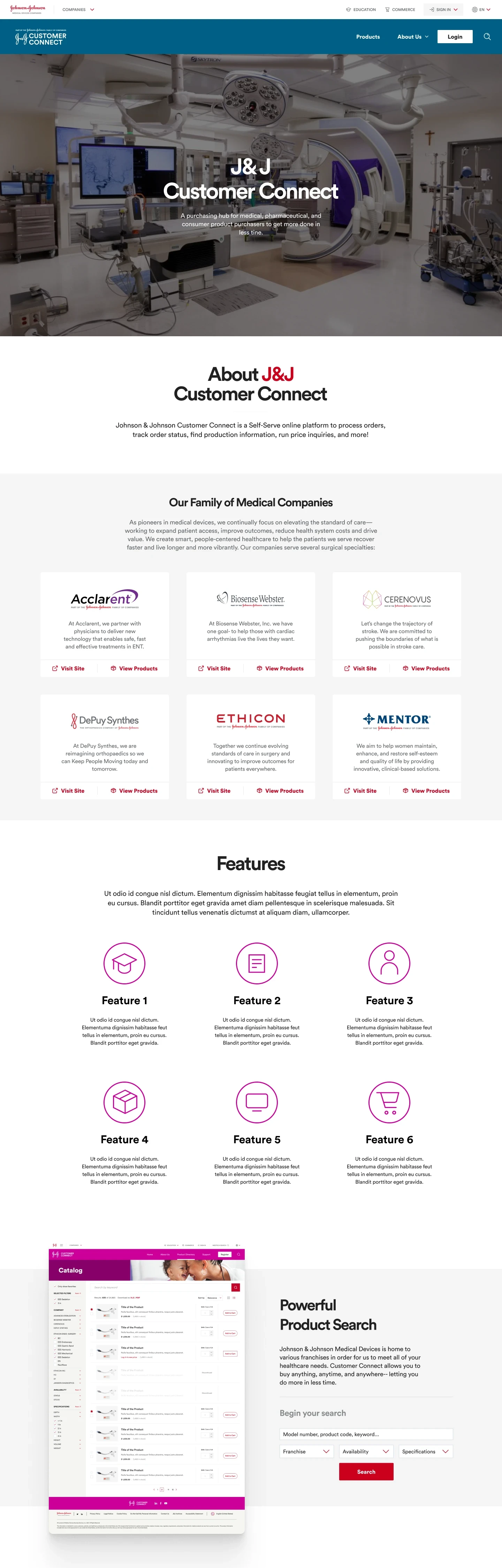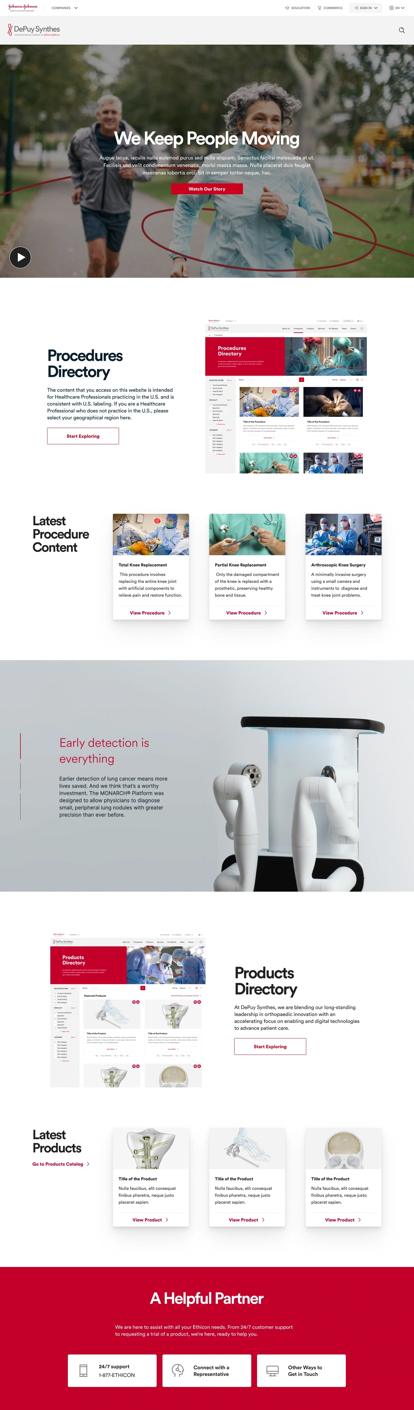 Additionally, I collaborated with JnJ in-house design lead to identify design opportunities and provide recommendations to upsell new features to key stakeholders. This involved developing designs of different sections and full pages that could be easily customized to align with each franchise branding leveraging a single design system.