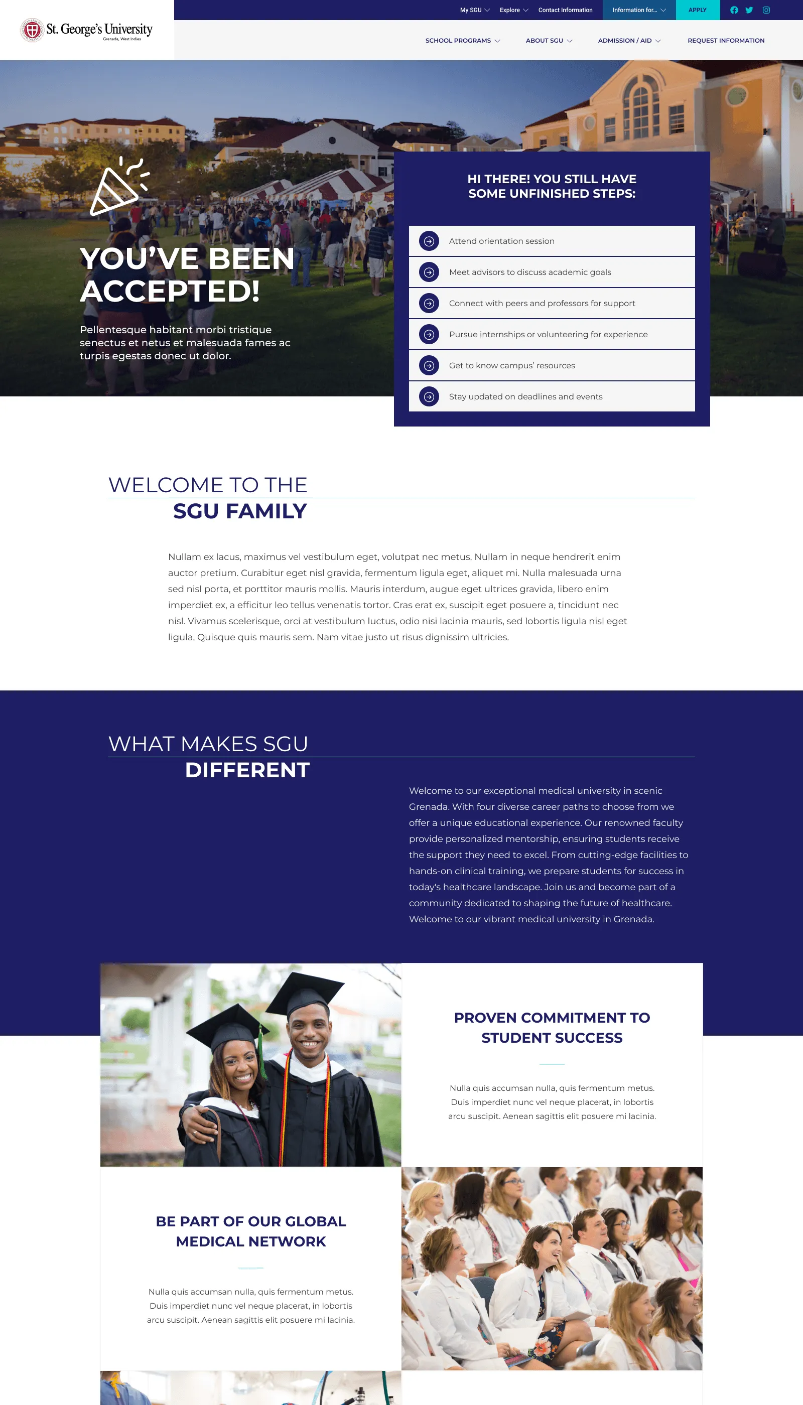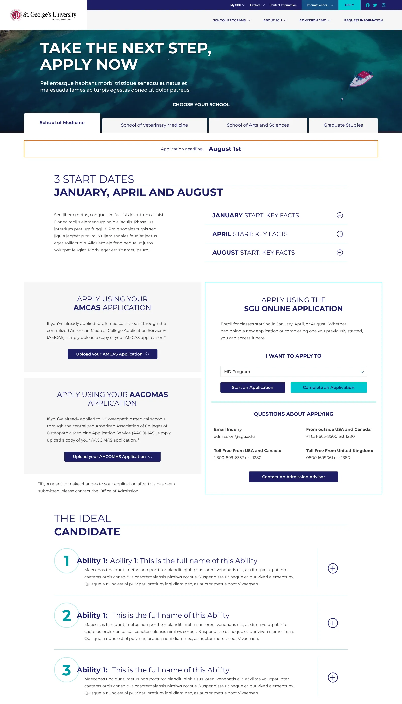 After the successful deployment of a highly converting landing page, SGU decided to redesign its entire desktop and mobile experience. The goal was to organize and ease the process for accessing the vast amount of information on every academic program SGU offers.